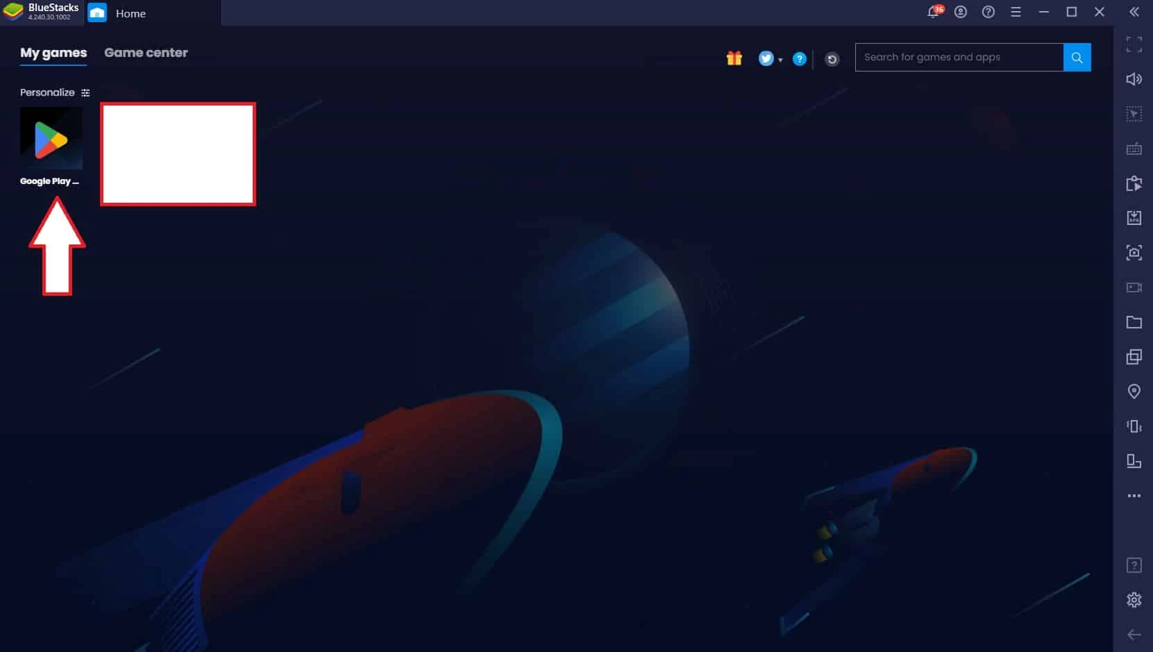 w tym ostatnim kroku możesz zaimportować plik com.android.vending.apk do Bluestack lub możesz przeszukać aplikację Google Play za pomocą wyszukiwarki Bluestack.