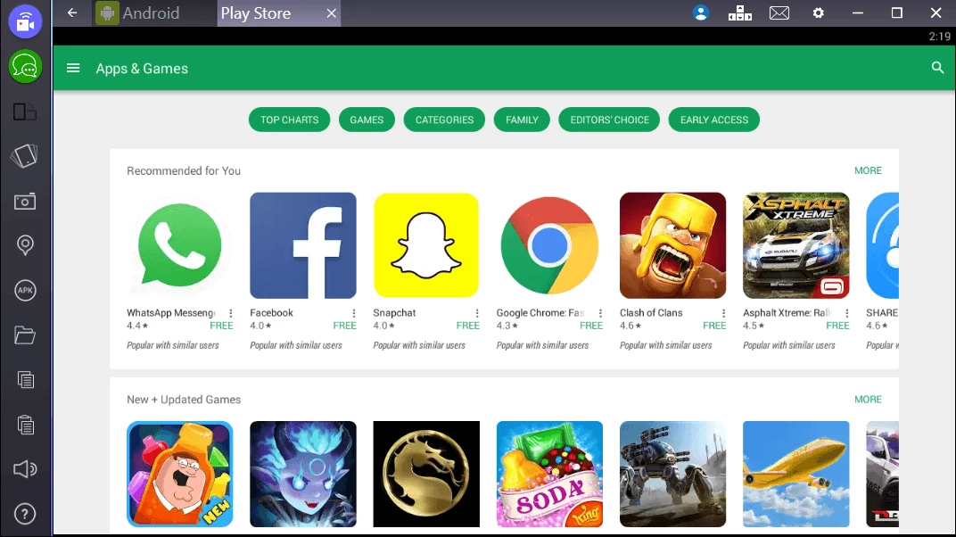 Nieograniczona liczba płatnych i darmowych gier jest dostępna w sklepie Google Play App Store na PC. Aplikacja pozwala cieszyć się grami w czasie rzeczywistym i grać z wieloma znajomymi oraz osobami z innych krajów. Można również korzystać z zapisów w chmurze, rankingów, osiągnięć i wielu innych funkcji.